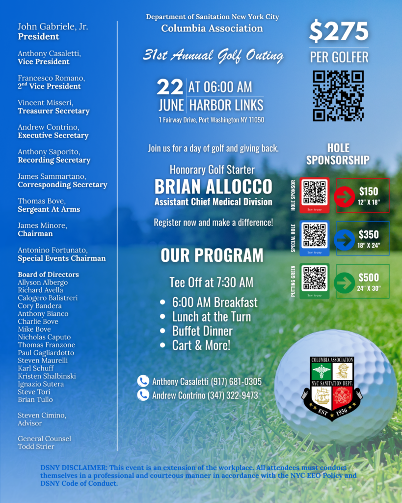 Established in 1936, the Columbia Association of the Department of Sanitation, Inc. seamlessly blends time-honored traditions with cherished family values to pursue our central objective.